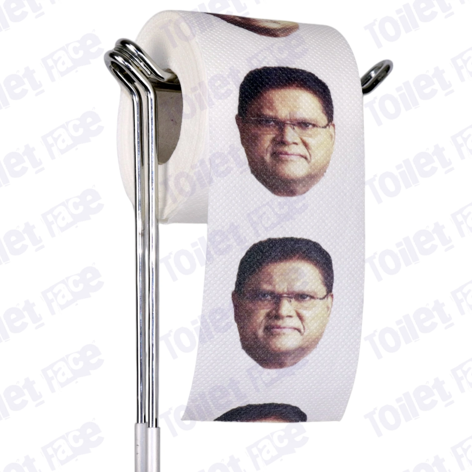 Featuring Chandrikapersad Santokhi’s face on every sheet of toilet paper & crafted from recycled paper!