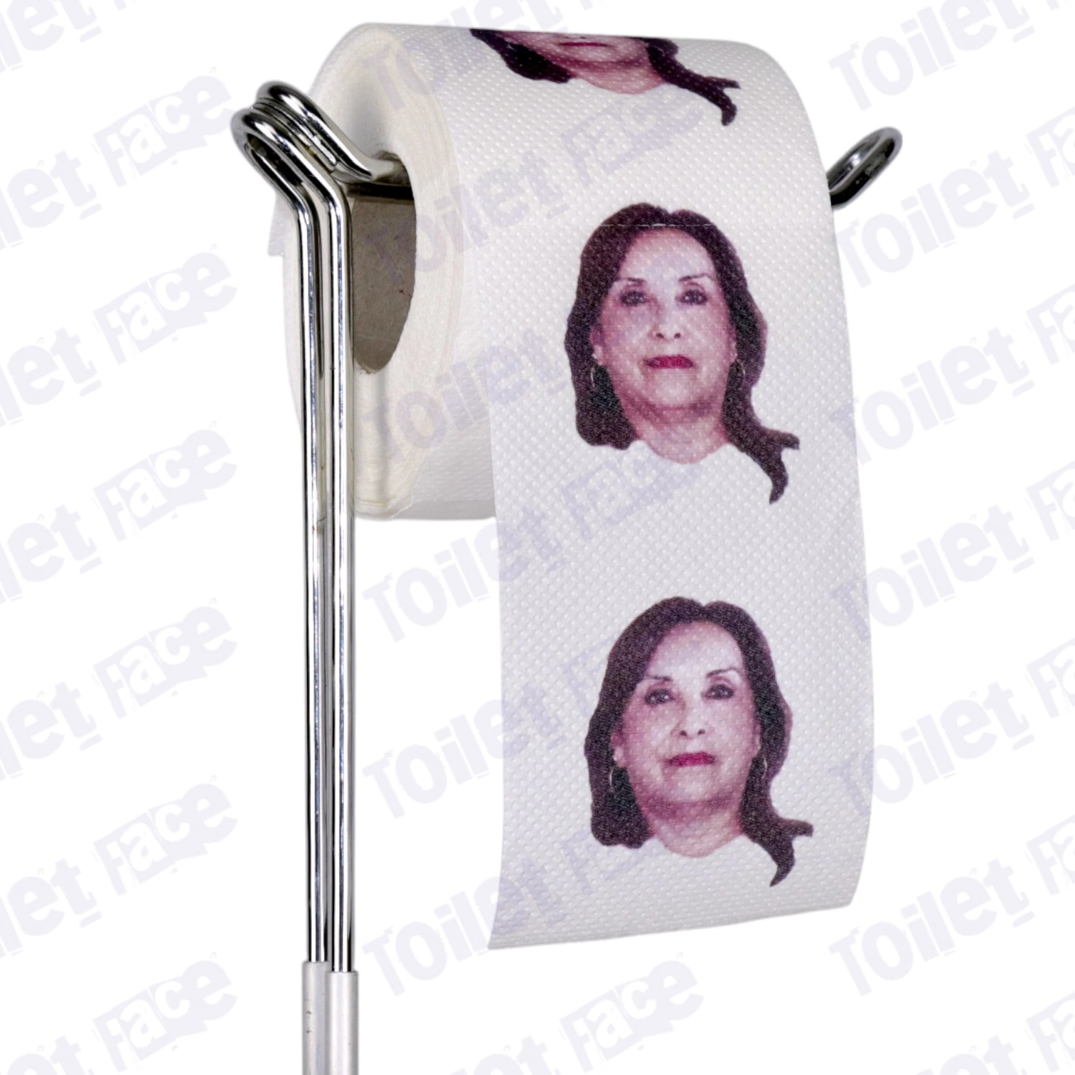 Featuring Dina Boluarte’s face on every sheet of toilet paper & crafted from recycled paper!