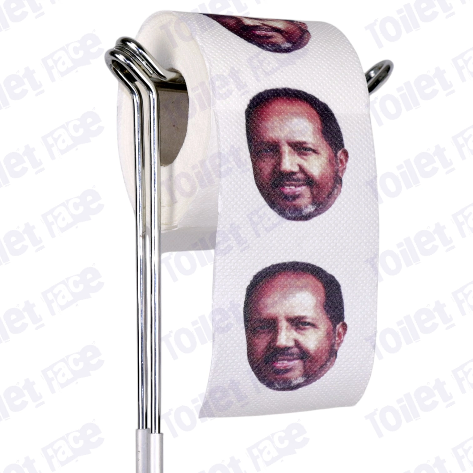 Featuring Hassan Sheikh Mohamud’s face on every sheet of toilet paper & crafted from recycled paper!