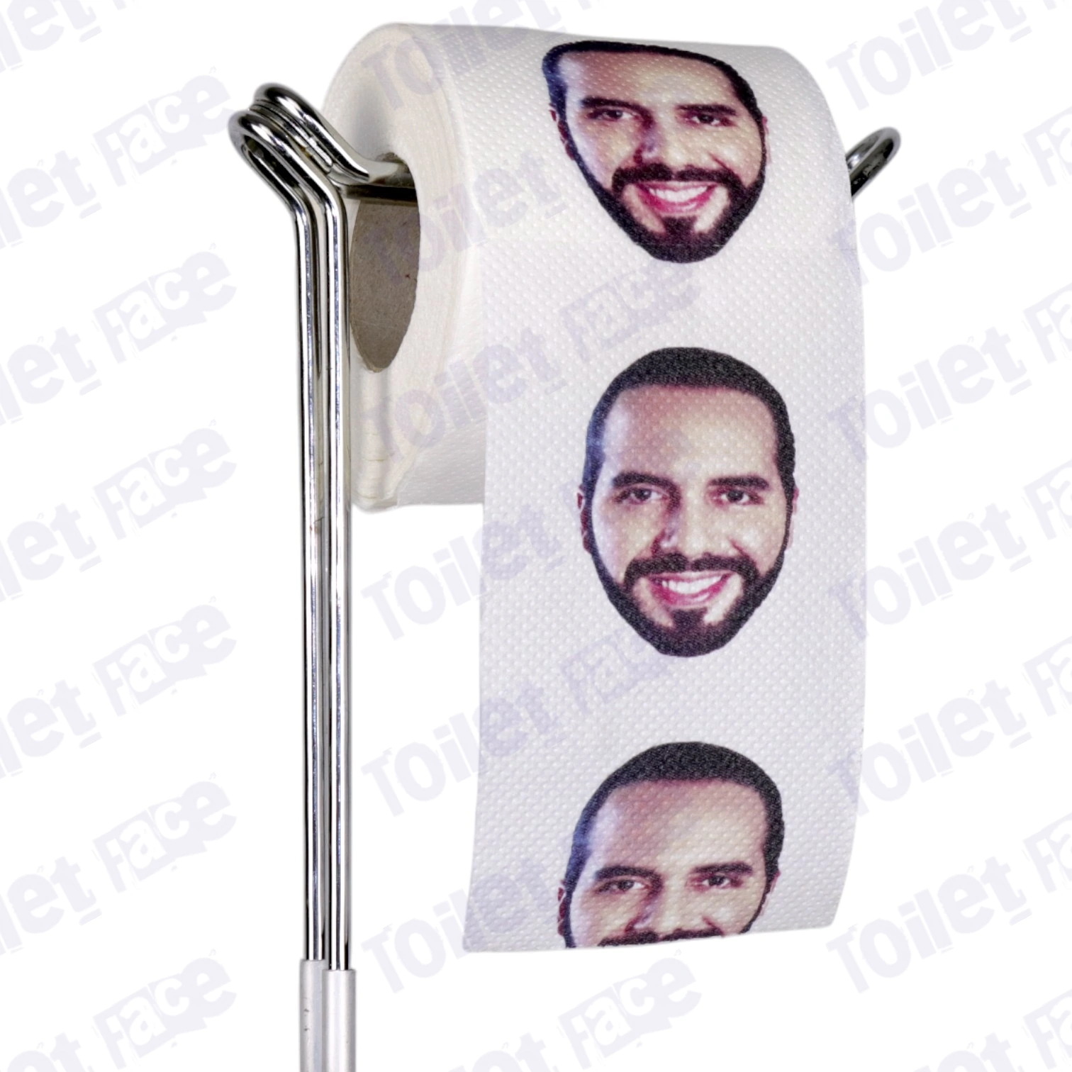 Featuring Nayib Bukele’s face on every sheet of toilet paper & crafted from recycled paper!