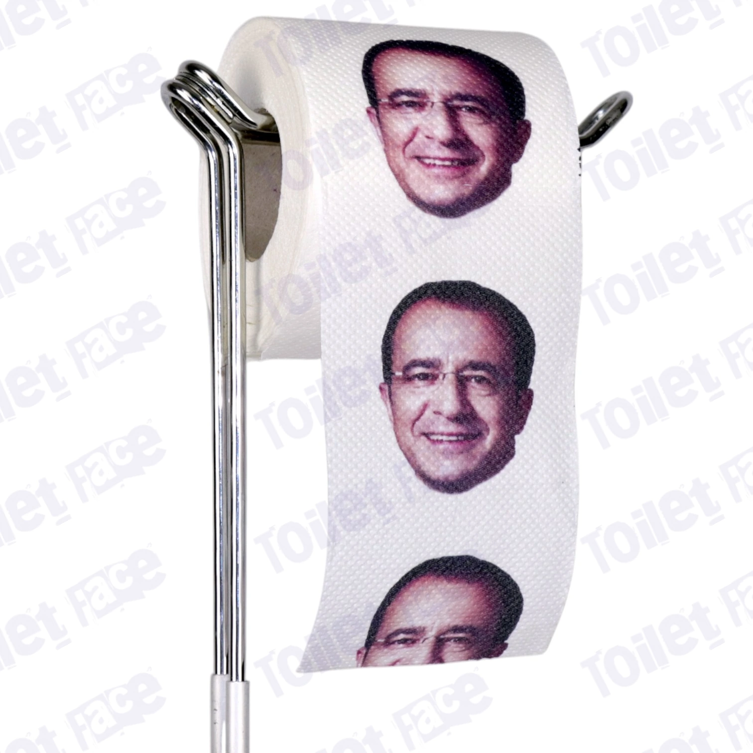 Featuring Nikos Christodoulides’s face on every sheet of toilet paper & crafted from recycled paper!