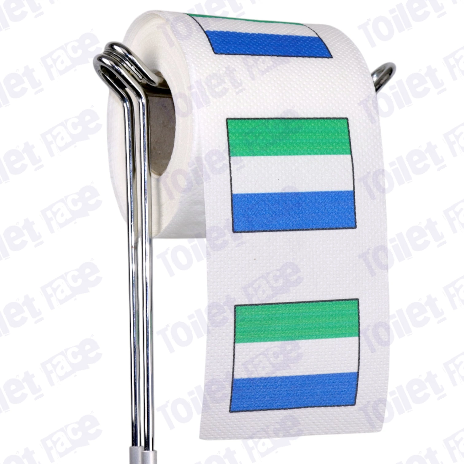 The ultimate way to add humour and personality to any bathroom! Featuring a full-colour print of the Sierra Leone flag on every sheet, this roll is guaranteed to get laughs rolling—right from the first wipe.